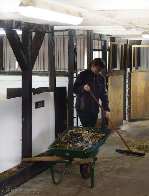 Alla djuren utsläppta och fodrade.... jag sitter vid frukostbordet och höll på att sätta kaffet i vrångstrupen när jag fick ett sms "Vill du ha hjälp med mockningen idag?"....svar JA!!